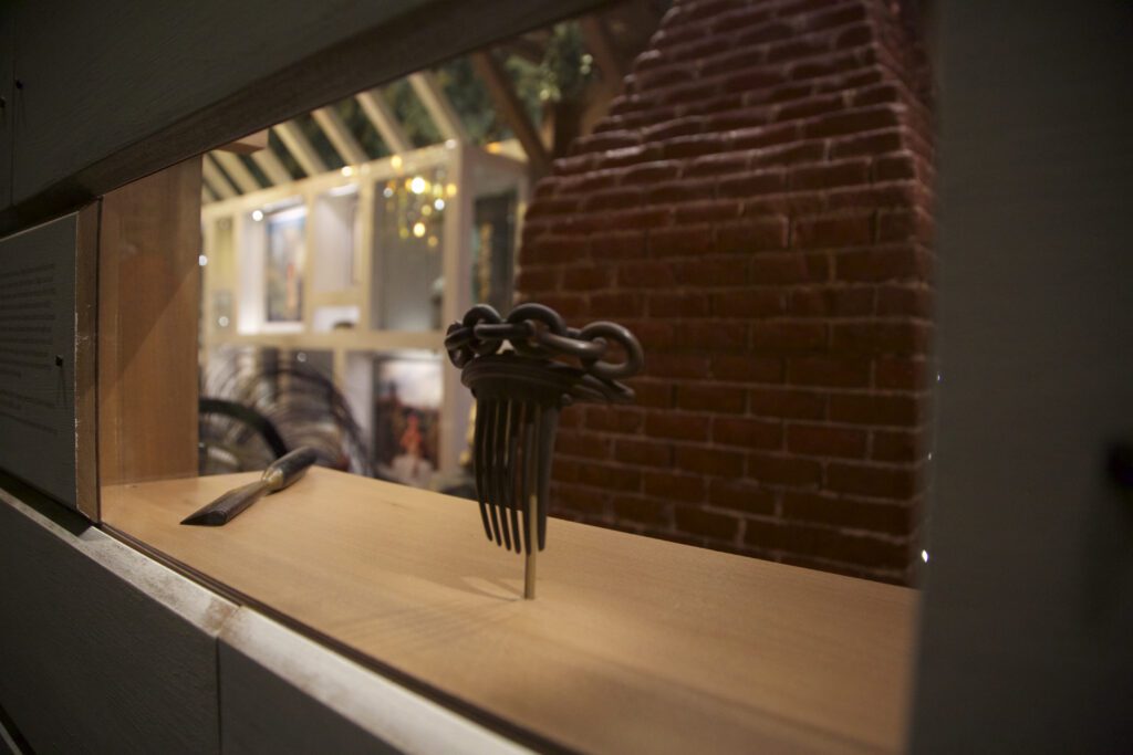 There are other curious aspects of this exhibition. Some sections are “open” (just covered by glass) and others are wood paneled, with small windows cut in. Why would we have to peek inside?