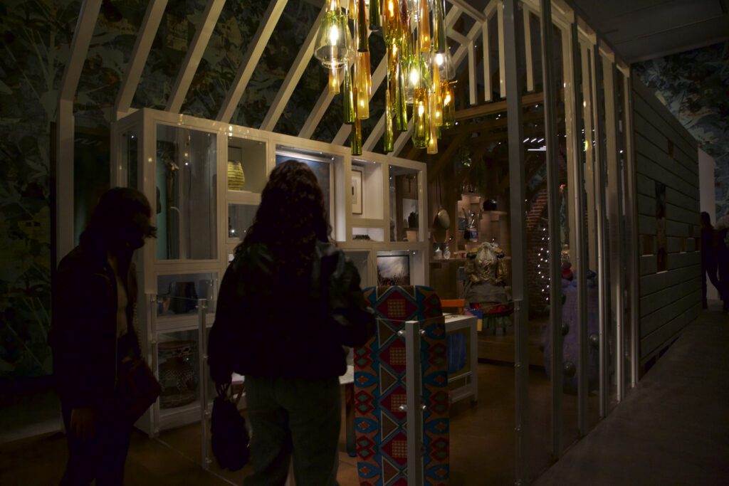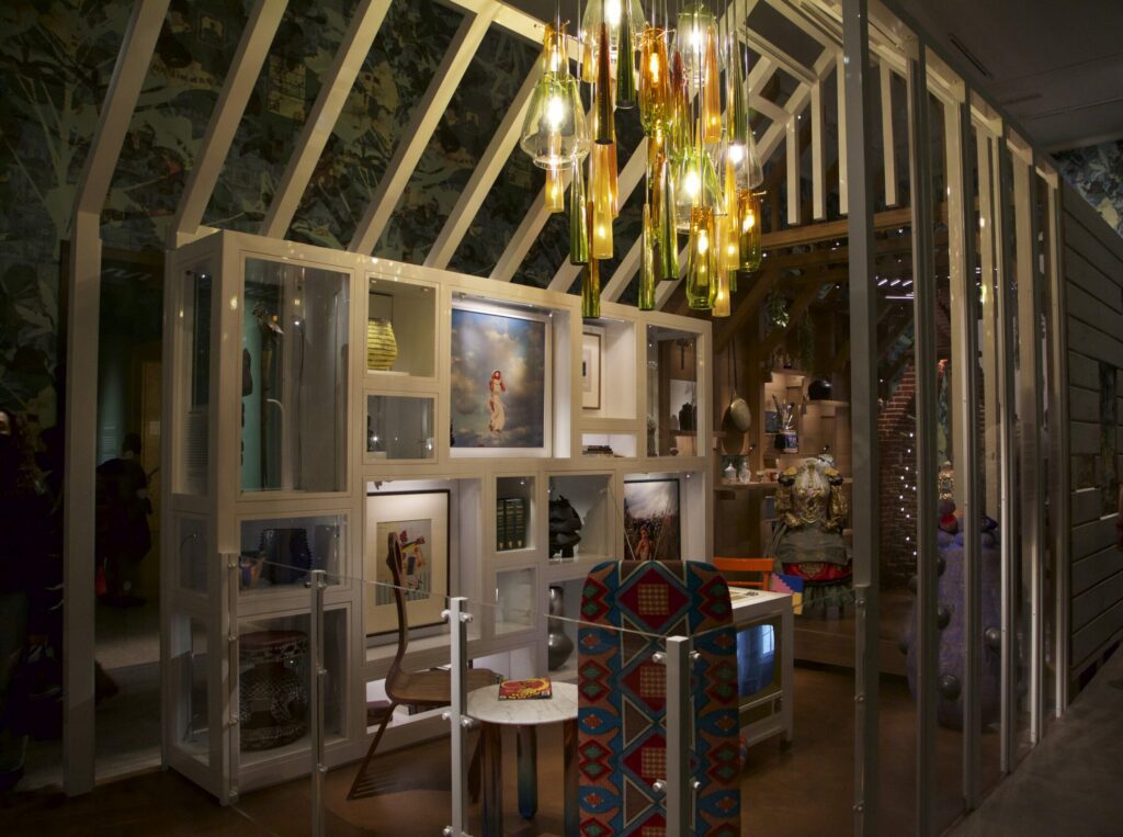 Looking at the AfroFuturism period room, we are left to wonder quite a lot. Where would someone sleep — in chairs? What could I cook with the kitchen herbs on the wall? But even more confounding: how can I know more about indivual works of art that decorate the walls of this imagined house?
